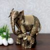 Handcrafted Antique Finish Elephant with Child Decorative Showpiece – 20 cm (Polyresin, Multicolor)