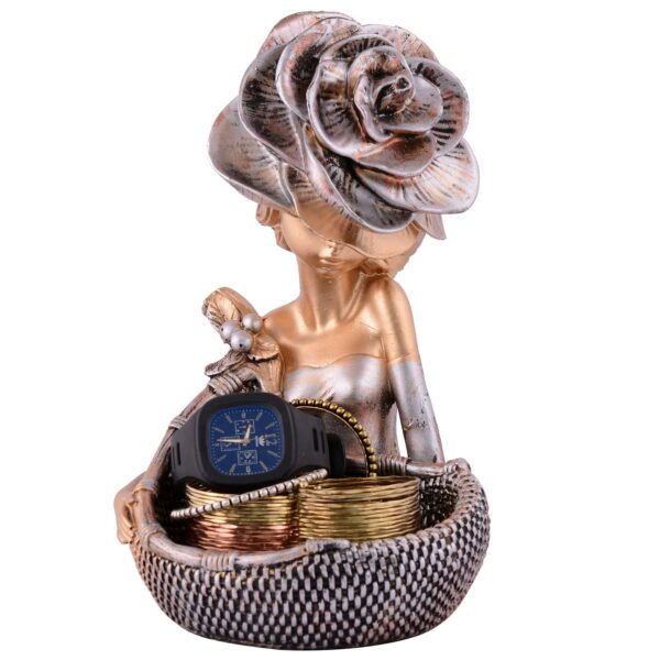 LADY with Basket Showpiece for Home Decor brown Showpiece | Girl Basket Showpiece & Office Decor Showpiece